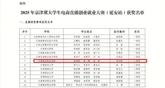 近日,由天津市委教育工委、天津市教委和陜西省延安市政府共同組織的2025年京津冀大學生電商直播創業就業大賽(延安站)落下帷幕。天津海運職業學院學生團隊充分運用所學專業知識和直播技能應賽,榮獲直播銷售賽道二等獎。