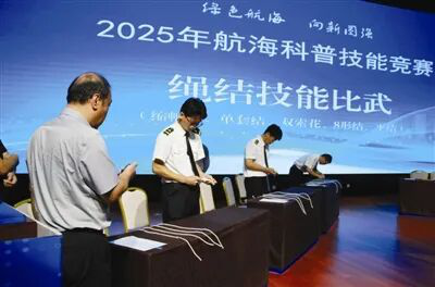 海上航行技術(shù)人員的繩結(jié)技藝堪稱他們的“看家本領(lǐng)”,不同的繩結(jié)有不同的作用。近日,在天津海運(yùn)職業(yè)學(xué)院進(jìn)行的“2025年航海科普技能競賽”賽場上,選手們用規(guī)范又巧妙地打繩結(jié)技巧,將比賽推向高潮。