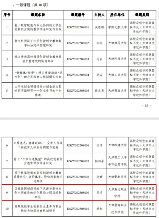 日前,市教育兩委公布2025年大中小思想政治工作專項課題立項名單,學院團委書記王洋主持申報的《區域協同創新視域下天津市高校眾創空間建設的優化路徑與聯動機制研究》獲批2025年天津市大學生創新創業專項課題立項。
