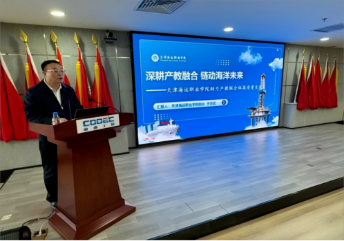 2025年3月21日,天津港保稅區(qū)高端裝備制造(海洋工程裝備)產(chǎn)教聯(lián)合體在海洋石油工程股份有限公司天津智能制造分公司召開2025年度工作會。天津海運職業(yè)學(xué)院院長于忠武受邀出席會議,并結(jié)合學(xué)院“產(chǎn)教融合、科技創(chuàng)新、人才培養(yǎng)模式改革”等話題同參會嘉賓進(jìn)行工作分享與交流。