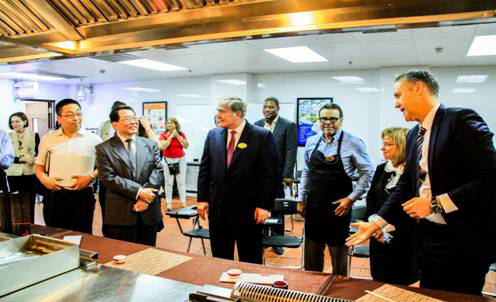 加勒比董事局及夫人在培訓(xùn)中心體驗(yàn)了作為加勒比學(xué)員從報(bào)到、接受培訓(xùn)、員工用餐、餐飲服務(wù)等全部培訓(xùn)生活。費(fèi)恩先生和馬魁君書(shū)記分別為參加烹飪培訓(xùn)、擺臺(tái)培訓(xùn)、客房培訓(xùn)的優(yōu)勝者頒發(fā)了培訓(xùn)合格證書(shū)。