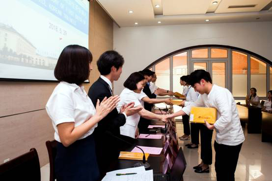 Johnnie Park代表韓國培訓生發言。他表示,中國的強大并不是僅僅是因為他的規模,她的偉大在于人民的精神。這里所有的人對我們都很有耐心,一直試圖幫助我們。在此學習期間,也希望有機會交流我們的文化,教大家韓語,彼此成為朋友。