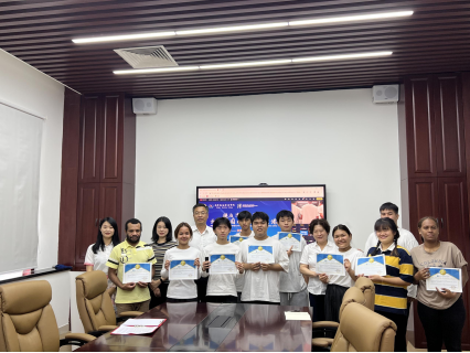 泰國留學生張晴表示,在本次漢語橋線上團組項目中學到了很多有趣的知識,不僅提高了中文水平,也對中國海洋文化有了進一步了解。今后希望繼續參加這樣的活動,感謝老師們的辛勤付出。耿春梅處長、楊國強主任為優秀學員代表頒發證書。