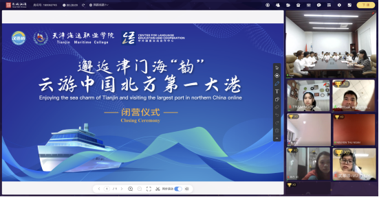 7月11日,由教育部中外語言合作交流中心主辦、天津海運職業學院承辦的2022年“邂逅津門海韻,云游中國北方第一大港”漢語橋線上團組項目閉營儀式順利舉行。國際交流處處長耿春梅、基礎教學部(體育部)主任楊國強、漢語橋項目授課教師和優秀學員代表參加閉營儀式,共同見證此次活動的完美收官。