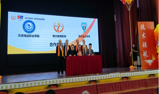 開幕式上,吳宗保院長代表學院與馬來西亞獨大教育機構、馬來西亞尊孔獨立中學共同簽署了《中國天津海運馬來西亞國際學院合作項目協議書》,三方合作開展尊孔獨立中學“烹飪專業”學生的聯合培養。次日,代表團一行拜訪了尊孔獨立中學,舉行“中國天津海運馬來西亞國際學院-國際合作辦學基地”揭牌儀式。