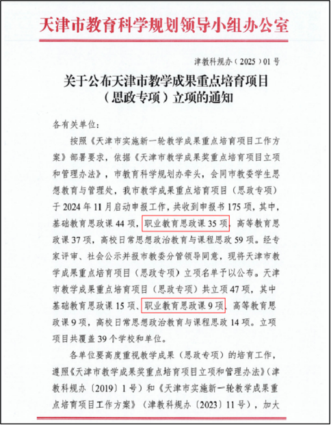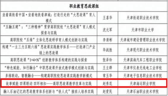 近日,市教育科學(xué)規(guī)劃領(lǐng)導(dǎo)小組辦公室公布天津市教學(xué)成果獎重點培育項目(思政專項)立項結(jié)果,思政教學(xué)部趙秀花教師團隊申報的《故事賦能四課聯(lián)動四環(huán)相扣——高職思政課教學(xué)改革與實踐》從35項申報項目中脫穎而出,獲批立項。