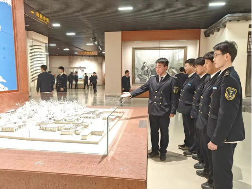 “同學們,今天我們的思政課教室有些不一樣!”日前,天津海運職業學院思政教學部陳宏偉、李翔、李雪、張晨瑋四位教師帶領航海技術系2024級輪機5班、6班的76名學生走進平津戰役紀念館,將思政課堂搬到了場館之中。