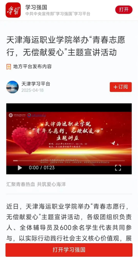 近日,天津海運職業學院舉辦“青春志愿行,無償獻愛心”主題宣講活動,各級團組織負責人、全體輔導員及600余名學生代表共同參與,以實際行動踐行社會主義核心價值觀,展現海運青年的責任擔當。