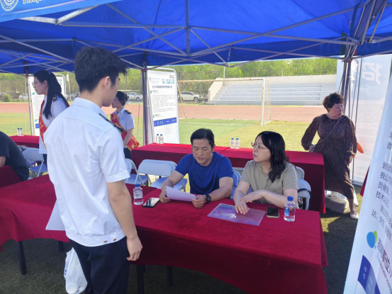 在雙選會現場,學院聯合濱海新區人力資源和社會保障局、津南區人力資源和社會保障局、云僦業、教育在線等4家單位設置政策咨詢、就業指導、直播帶崗等“一站式”就業服務專區,以“政策宣介+能力指導”的服務模式,為學生提供就業指導。