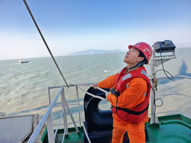 2024年,趙世欣登上了有著“風電施工巨無霸”之稱的“港航平5”——這艘國內起升高度最高、起重能力最強的工程船,正肩負著我國深遠海風電建設的重任。作為見習三副,他把“學徒”姿態做到極致,清晨跟著前輩巡檢船舶設備,手里的筆記本記滿設備參數與操作要點;午休時捧著船舶定位、導航手冊啃讀,遇到不懂的就追著老船員“打破砂鍋問到底”;就連日常的艙室清潔,他也會借機觀察設備布局與管線走向。這份拼勁讓他半年內快速蛻變,更在一次近海夜航中展現出過硬素養:當時雷達未識別的小漁船突然高速沖來,他憑借敏銳的視覺瞭望第一時間發現險情,立即向駕駛員報告,配合完成鳴笛、減速、轉向等一系列操作,化險為夷。