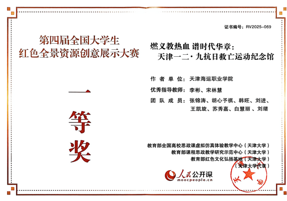 近日,由教育部全國高校思政課虛擬仿真體驗教學中心、教育部課程思政教學研究示范中心主辦的第四屆全國大學生紅色全景資源創意展示大賽結果公布。馬克思主義學院李彬、宋林慧兩位老師指導的作品《燃義教熱血譜時代華章》,斬獲全國一等獎。創作團隊由來自航海技術系、海洋工程裝備系、信息工程系的張錦濤、胡心予祺、韓旺、劉進、王凱旋、蘇秀嘉、白慧麗、劉緒等8名同學共同組建。