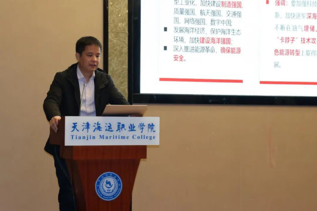 專家報告環節,大會邀請了多位專家學者分享最新研究成果。天津海運職業學院院長于忠武作題為《深耕藍色沃土培育時代海匠——天津海運職業學院育人實踐與專業群建設探索》的專題報告,分享了學院立足海運、海港、海工三大領域,服務國家海洋強國戰略的實踐經驗與專業群建設成果;天津大學焊接與先進制造研究所副所長程方杰、海洋石油工程股份有限公司研發技術部部門經理雷震名、交通運輸部海事局船舶技術規范專家委員會秘書陳夢華分別圍繞焊接制造技術、海洋工程技術發展歷程、綠色能源動力船舶技術等前沿熱點領域作了精彩報告。