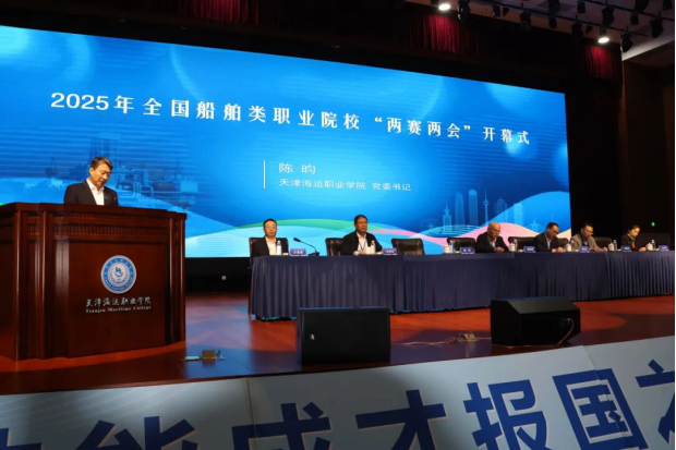 啟動(dòng)儀式由天津海運(yùn)職業(yè)學(xué)院院長(zhǎng)于忠武主持,學(xué)院黨委書記陳昀代表學(xué)校致辭。他表示,作為天津市唯一的涉海類高職院校,學(xué)院始終以服務(wù)國(guó)家海洋強(qiáng)國(guó)、交通強(qiáng)國(guó)戰(zhàn)略為己任,今年成功入選國(guó)家“雙高計(jì)劃”建設(shè)單位。本次“兩賽兩會(huì)”是展示船舶職業(yè)教育成果、推動(dòng)產(chǎn)教融合的重要平臺(tái),學(xué)院將全力做好服務(wù)保障,助力師生交流提升。中國(guó)交通教育研究會(huì)職教分會(huì)理事長(zhǎng)施祝斌在致辭中表示,船舶類專業(yè)“兩賽兩會(huì)”已成為行業(yè)年度重要活動(dòng),今年參會(huì)規(guī)模創(chuàng)歷史新高。他強(qiáng)調(diào),當(dāng)前我國(guó)船舶工業(yè)在全球保持領(lǐng)先地位,行業(yè)正向綠色化、智能化轉(zhuǎn)型,職業(yè)院校要緊扣產(chǎn)業(yè)需求,深化“崗課賽證”綜合育人,推動(dòng)教育鏈與產(chǎn)業(yè)鏈深度融合。