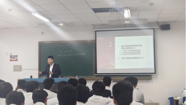 張鑫老師圍繞《毛澤東思想和中國特色社會主義理論體系概論》第六章第一節“鄧小平理論首要的基本的理論問題和精髓”進行了深入淺出地講解。他巧妙地以2024年為紀念鄧小平同志誕辰120周年而特別發行的郵票作為課程導入,吸引了在場師生的注意力。通過情景演繹、課堂探究以及紅色電影融入等方法將抽象的理論知識轉化為生動有趣、貼近學生實際的教學內容,贏得了在場師生的一致贊譽與好評。