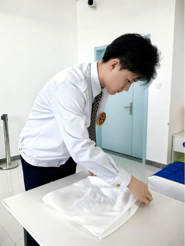 在職業(yè)教育改革不斷深化的時代背景下,這場看似簡單的毛巾折疊展示活動,實則蘊含著深刻的內涵。年輕學子們正以飽滿的熱情和堅定的信念,用雙手編織著屬于自己的美好未來。他們以技能為舟,在人生的海洋中乘風破浪,駛向人生的廣闊天地。