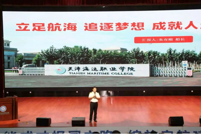 會議特別邀請了天津市惠通海員管理服務有限公司船長朱有順,為家長們做了精彩的船員職業認知宣講。朱船長以其豐富的航海經驗和管理經驗,從航運歷史、航運重要性、職業特點及發展前景、安全性與舒適性、職業規劃及福利待遇等多個方面,全面解析了航海職業的魅力。他鼓勵家長和學生堅定從事航海的職業理想,深度強化與學院的協同聯動,攜手構筑全方位育人合力,以無微不至的關懷與堅定不移的信念,共同擘畫學生成長與發展的宏偉藍圖。