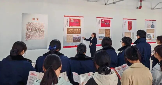 在沉浸式參觀環節,思政課教師陳宏偉以抗美援朝戰爭中19面志愿軍英雄集體所榮獲的獎旗為線索,生動講述戰旗背后的戰斗故事。同學們深情凝望著彈孔依稀、血跡暗沉的戰旗,似乎開啟了一場跨越時空的精神對話,深刻體悟到每一面戰旗都見證著志愿軍將士以血肉之軀捍衛祖國尊嚴的壯烈歷程,每一個故事都彰顯了祖國利益高于一切的家國情懷。