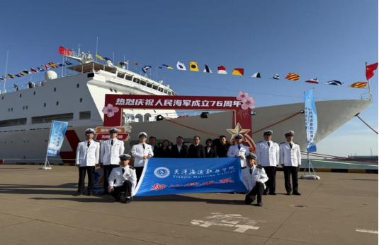 為慶祝人民海軍成立76周年,海軍于23日前后在沿海10多個城市港口同步舉行艦艇開放活動,開放艦艇數(shù)量、型號均為歷年來海軍艦艇開放活動之最,其中,“和平方舟”號醫(yī)院船首次靠泊天津。4月22日,在天津市津南區(qū)退役軍人事務(wù)局的精心安排和組織下,學(xué)院院長于忠武,副院長王明春,黨委學(xué)生工作部、科研處、航海技術(shù)系主要負(fù)責(zé)同志及學(xué)生代表登上“和平方舟”號醫(yī)院船參觀。師生近距離感受我國先進(jìn)的海上醫(yī)療保障水平,同時也上了一堂生動的國防教育課。