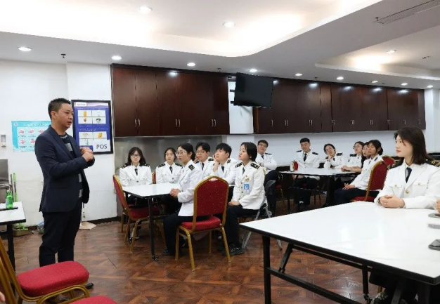 5月8日,學院2023級與2024級國際郵輪乘務(wù)管理與郵輪烹飪專業(yè)訂單班學生分別參與“產(chǎn)教雙驅(qū):國際郵輪高管的中國課堂”和“初航遇知音:新學員對話皇家領(lǐng)航者”互動課程。通過模擬真實工作場景,學生直觀掌握國際郵輪服務(wù)規(guī)范,深化對行業(yè)服務(wù)標準的體會與理解。2023級國際郵輪乘務(wù)管理專業(yè)學生代表徐一帆表示:“課程讓我們提前適應(yīng)企業(yè)要求,明確了成為國際化郵輪人才的努力方向。”