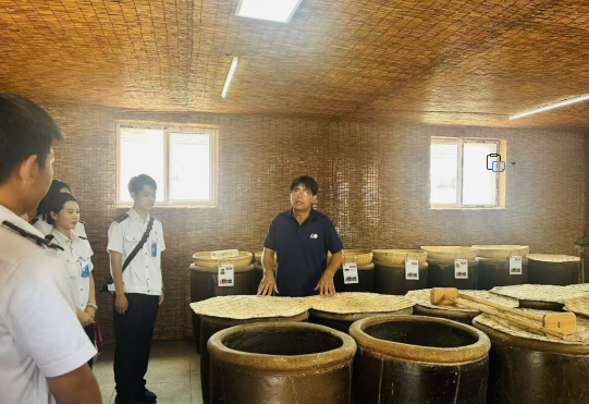 同學們首先前往天津市靜海區獨流鎮的天立老醋場。天立公司負責人為同學們詳細講述了天立獨流老醋的發展歷程、企業理念以及傳統釀醋工藝。同學們紛紛表示,要傳承天立獨流老醋所蘊含的“匠心”精神,努力成長為對社會有貢獻的人。