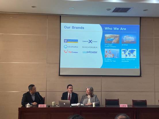 學(xué)院副院長王明春致歡迎辭,并就如何更好地應(yīng)對外界挑戰(zhàn)、適應(yīng)行業(yè)需求、提高郵輪人才培養(yǎng)質(zhì)量的課題進(jìn)行了深入闡述。