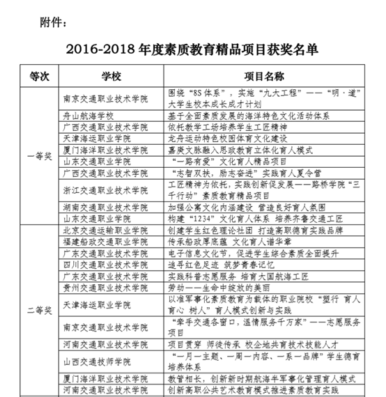 10月23日,中國交通職教分會素質(zhì)教育委員會《關(guān)于表彰2016-2018年度素質(zhì)教育精品項目的決定》公示評選結(jié)果,我院《龍舟運動特色校園體育文化建設(shè)》榮獲一等獎。