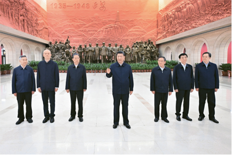 2022年10月27日,中共中央總書(shū)記、國(guó)家主席、中央軍委主席習(xí)近平帶領(lǐng)中共中央政治局常委李強(qiáng)、趙樂(lè)際、王滬寧、蔡奇、丁薛祥、李希,瞻仰延安革命紀(jì)念地。這是習(xí)近平在延安革命紀(jì)念館參觀《偉大歷程——中共中央在延安十三年歷史陳列》結(jié)束時(shí)發(fā)表重要講話。新華社記者 燕雁 攝