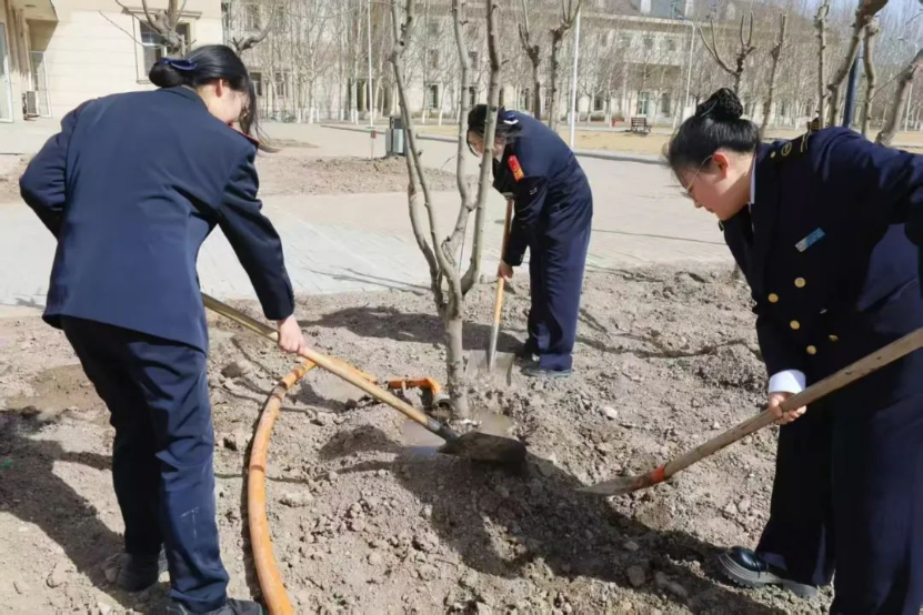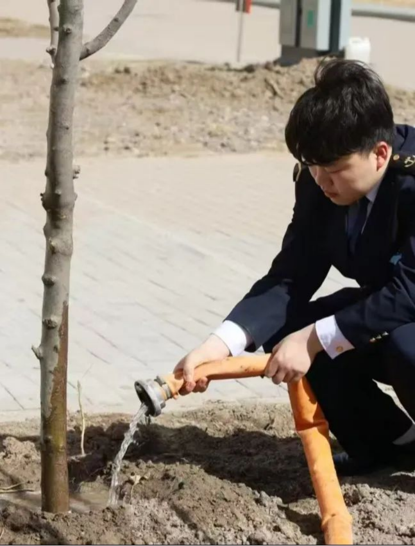 活動現場,同學們熱情高漲,干勁十足。大家手持鐵鍬,奮力鏟土,默契配合著扶正樹苗,再緩緩澆下生命之水。一鍬土,種下的是樹苗,更是對未來的憧憬;一桶水,澆灌的是希望,更是青春的擔當。每一個動作都飽含著同學們對大自然的熱愛,對綠色家園的深情守護