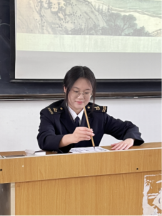 活動伊始,海運文學社干部張婷同學以“研究背景”為切入點,娓娓講述書法的起源。原始社會陶器、龜甲之上的遠古符號,諸如半坡彩陶符號,作為漢字與書法的萌芽,拉開了此次書法文化探尋之旅的序幕。而甲骨文,作為中國書法體系中最早的文字形態,更是讓社員們切實感受到書法藝術深厚的歷史積淀。