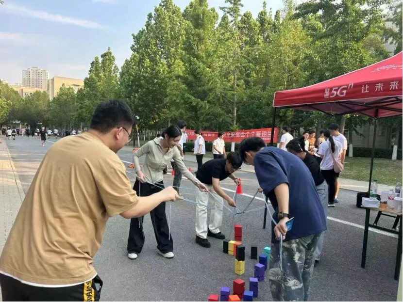 “合力搭建”環(huán)節(jié),學(xué)生們積極配合、相互支持;“足球青年”挑戰(zhàn),同伴們換位思考、相互信任。這兩項既有挑戰(zhàn)性又有趣味性的集體活動,不僅提升了團隊成員間的合作意識,促進了團隊凝聚力的形成,也提升了學(xué)生們?nèi)穗H溝通與交流能力。