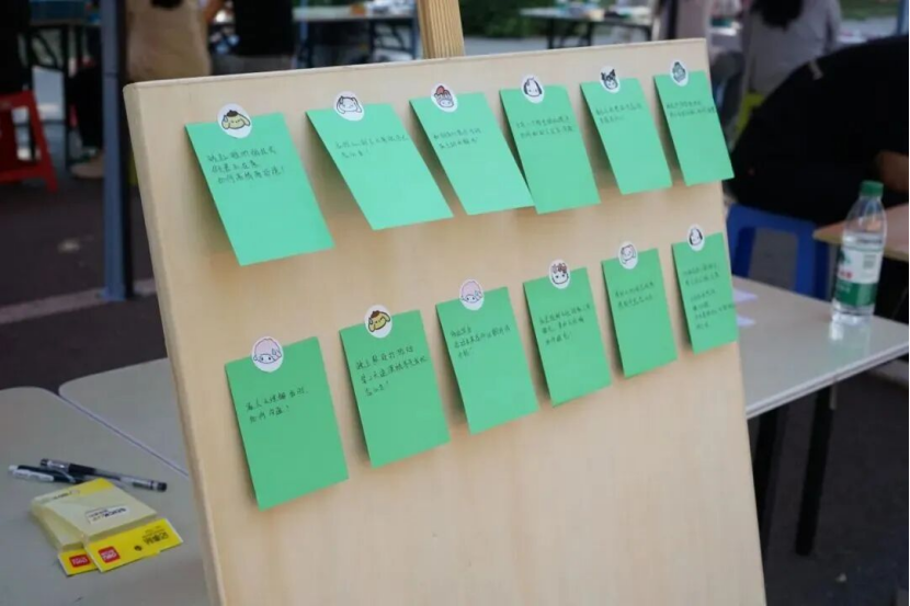 “情緒粉碎機”活動,同學(xué)們依托“情緒問題卡”,寫下近期的煩惱和不快,并粘貼到“情緒展板”上,以宣泄內(nèi)心的壓抑,釋放情緒。同時,志愿者組織學(xué)生現(xiàn)場體驗“54321著陸法”,引導(dǎo)學(xué)生嘗試通過調(diào)動感官體驗,從焦慮、壓力或情緒失控中快速回歸當(dāng)下,積極應(yīng)對情緒危機。