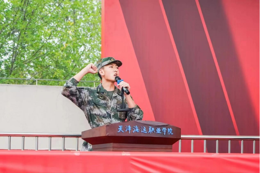 學(xué)院退役復(fù)學(xué)2023級學(xué)生、三營四連連長程睿作為教官代表發(fā)言。他鼓勵同學(xué)們在軍訓(xùn)中磨練意志品質(zhì)和培養(yǎng)吃苦耐勞精神,用實際行動踐行“強(qiáng)國有我”的青春誓言。